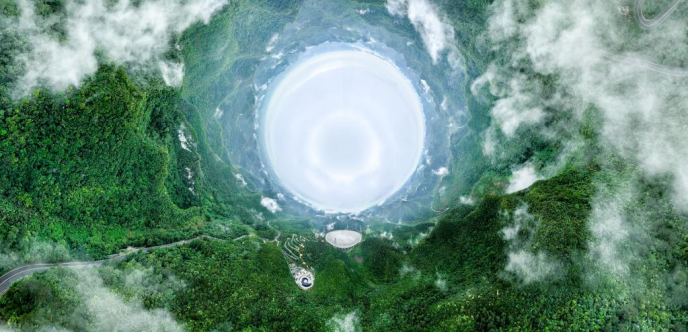 “中国天眼”全景图(维护保养期间拍摄)。新华社记者 欧东衢 摄
